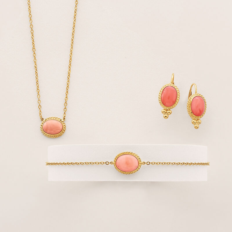 Bezel-Set Coral Drop Earrings in 14kt Yellow Gold